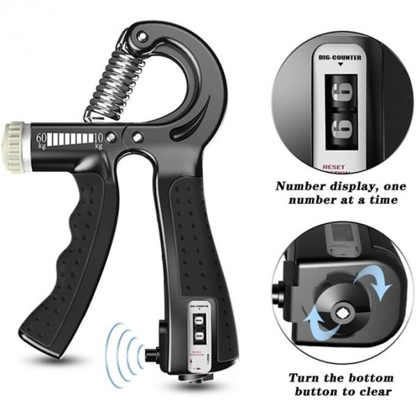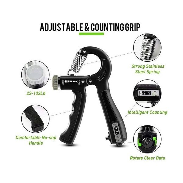 Hand Grip,10-60 kg Ajustable musculation avant bras, Musculation Main, musculation homme et femme Appareil d’entraînement de préhension avec fonction de comptage :Les hand grip strengthener ajoute un compteur mécanique au fond. Appuyez fermement sur le bouton pour compter automatiquement. Enregistrez le nombre de fois que vous vous entraînez à chaque fois et réutilisez-le. Augmentez la force et la flexibilité de vos poignets, mains et avant-bras. Vous pouvez exercer vos mains en même temps ou commencer à faire de l’exercice avec votre famille. Poignée à Main à Résistance Réglable: l’exerciseur de la Main renforcement peut être réglé de 10 à 60 kg, parfait pour les hommes et les femmes de différentes forces et pour rock climbers, joueurs de tennis, des athlètes et des musiciens pour améliorer la flexibilité des doigts et des poignets. Rééducation des blessures: L’exercice quotidien avec cet appareil d’entraînement à la préhension aide à récupérer des blessures aux mains, de la polyarthrite rhumatoïde, de l’arthrite, du canal carpien, de la ténosynovite, des fractures du poignet, des fractures et de la chirurgie des tendons. Renforce rapidement le muscle cible sans blessure, c’est l’outil parfait pour la rééducation postopératoire Large gamme d’utilisation :soulagez temporairement votre stress pour augmenter la force de l’avant-bras et la force des mains. Le hand grip est un appareil d’entraînement de l’avant-bras pour le fitness,mouvement , l’escalade, le bloc, le tennis, la boxe, la rééducation, la guitare, etc. Votre prise ne gênera plus vos progrès dans le gymnase.