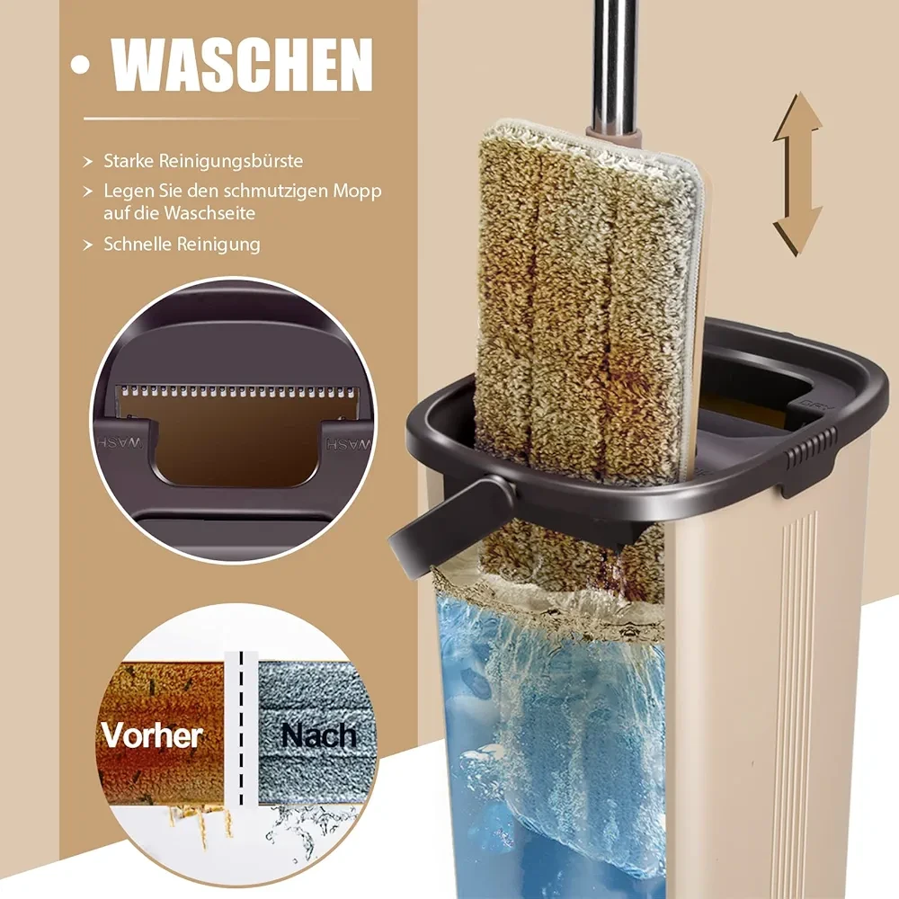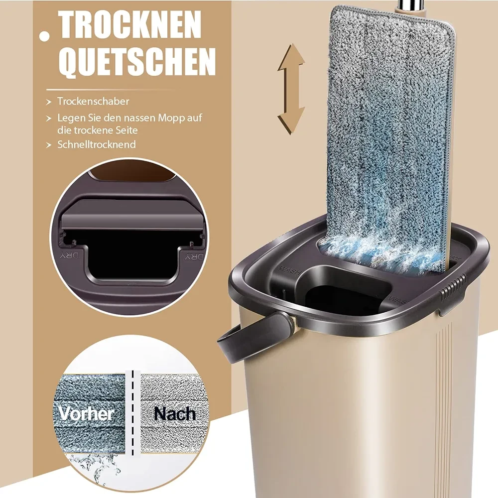 Balai serpillière avec seau + 4 Serpillière en microfibre