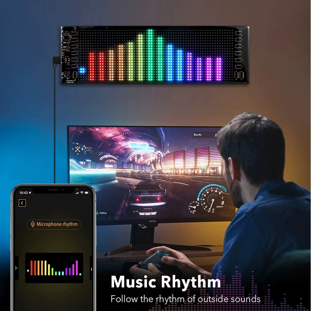 Contrôle intelligent de l'application : Connectez la matrice LED via l'application, vous pouvez concevoir du texte, des motifs, des animations en fonction de vos propres besoins et scènes, et vous pouvez également régler la luminosité et la vitesse pour répondre parfaitement à vos besoins.