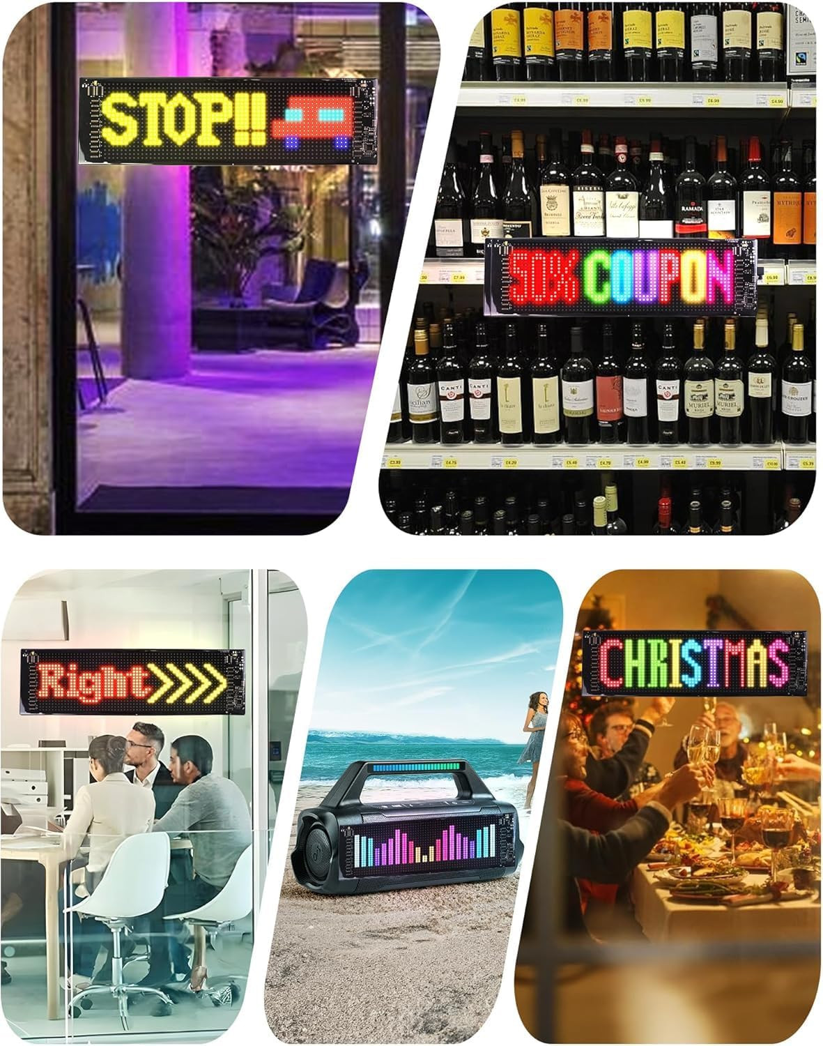 Convient à plusieurs scénarios : La matrice LED est largement utilisée dans les magasins, les hôtels, les KTV, les bars, les restaurants, les panneaux publicitaires intérieurs, les voitures, les concerts, les décorations de Noël ou de mariage, etc.