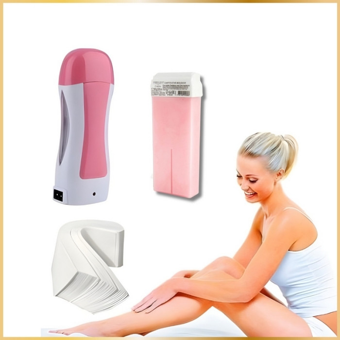 Kit Épilation Cire Rose Chauffe-Cire Électrique & Cartouche Roll Bright & Bandes
