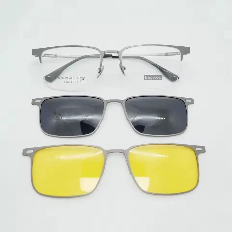 Lunettes de Soleil Optique Magnétiques en Alliage de Titane pour Unisexe Demi Cadre