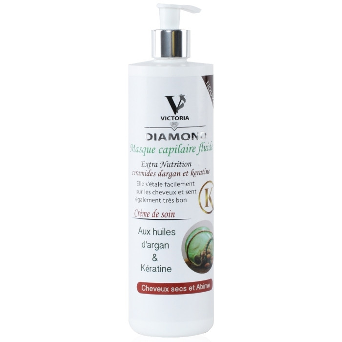 Masque Capillaire Fluide VICTORIA Diamond Sans Sulfate & Sans Silicone – Huiles d’Argan & Kératine – Cheveux Secs & Abîmés - 500 ML