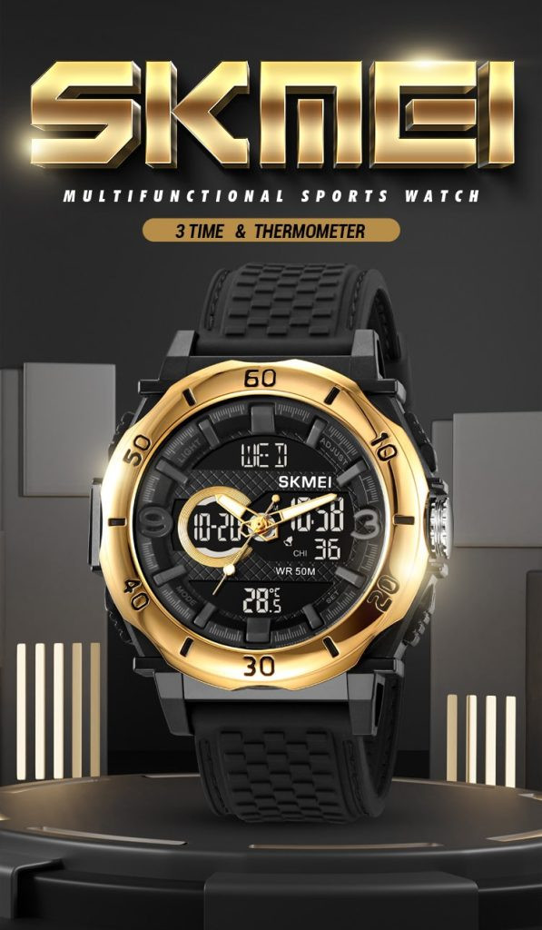 Montre Analogique Numérique Lumineux – Etanchéité 50 M – Ref : 2098 – Noir