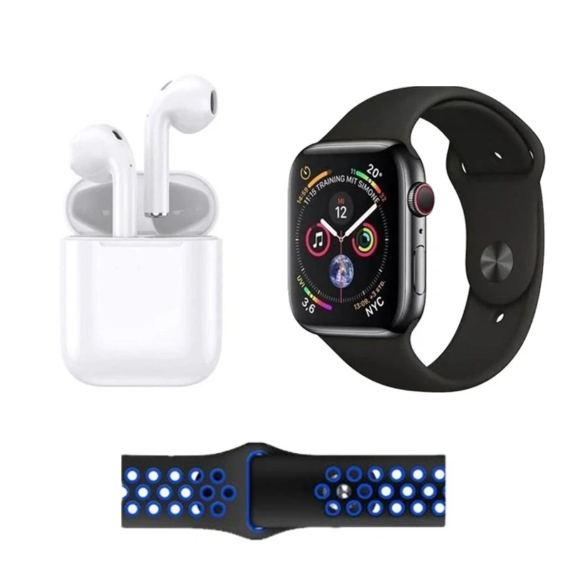 Discover the W26 Pro Max Série 8 Smartwatch Bundle, which includes a premium smartwatch, a pair of wireless AirPods-style earbuds, and two interchangeable straps to match your style. The smartwatch features a large high-resolution display, Bluetooth calling, real-time health monitoring (heart rate, blood pressure, sleep tracking), and full smartphone notification compatibility (iOS & Android). With the two included straps, you can switch between sport and classic looks instantly. The included wireless earbuds deliver crystal-clear sound for music and calls, making this bundle a complete tech solution for daily life. Sleek, functional and ready for your wrist—and ears.