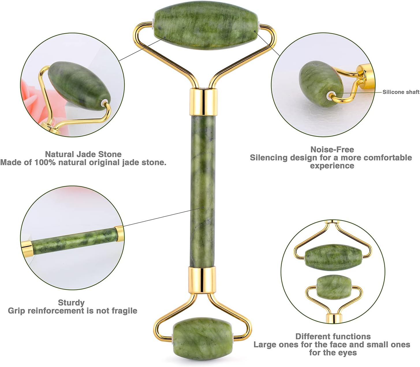 1. Matériel de pierre de jade: l’ensemble de massage de peau est matériel de pierre de jade avec de l’acier inoxydable, ils fourniront la sensation de fraîcheur, avec la surface douce, expérience d’utilisation confortable peut être facilement obtenue; la pierre de jade durable leur permet de servir et de vous tenir longtemps