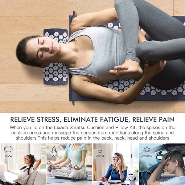 Soulagement de la douleur : allongez-vous simplement sur le tapis pendant 10 à 30 minutes par jour pour soulager naturellement les tensions musculaires et les maux de dos. L’acupression libère des endorphines pour arrêter la douleur et aider à détendre les muscles du dos, du cou et des pieds.