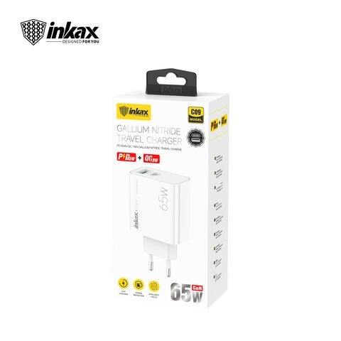 Adaptateur Tête Chargeur 2 ports PD 65W et QC 18W Inkax C09