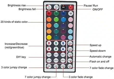 Emballage inclus: * Bande LED SMD 5050 de 16,4 pieds de 5 mètres * 1x télécommande IR 44 touches * 1x alimentation 12v 5A incluse