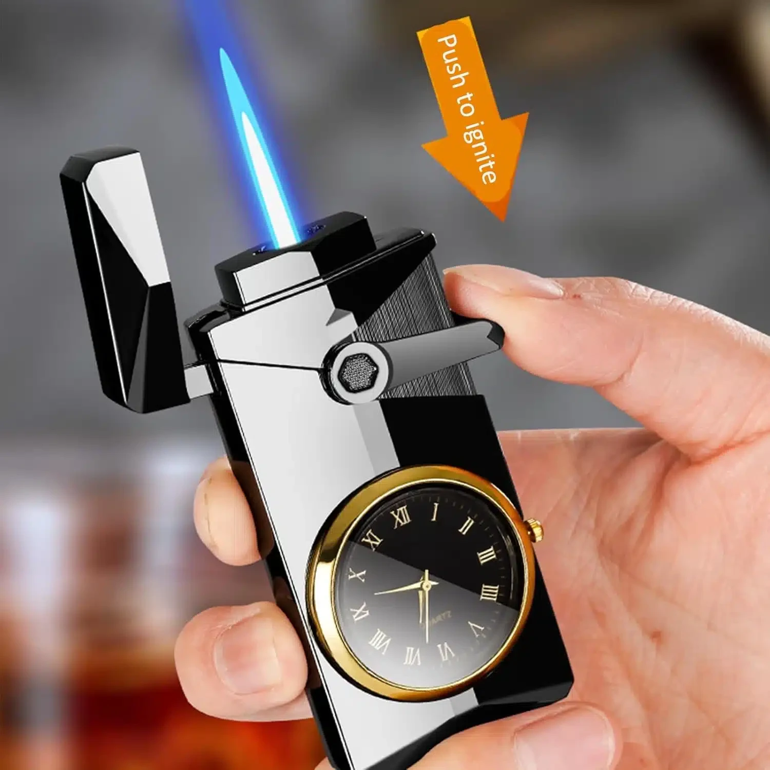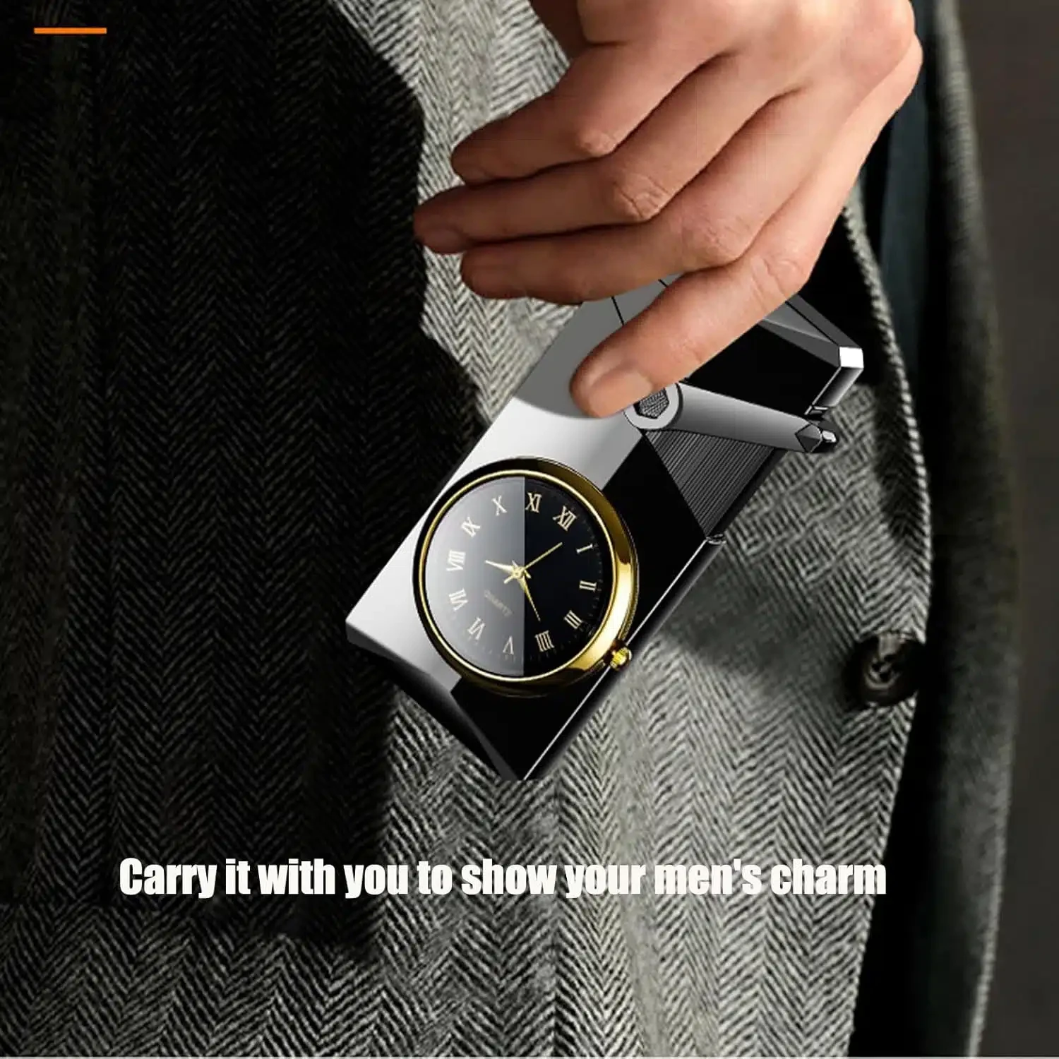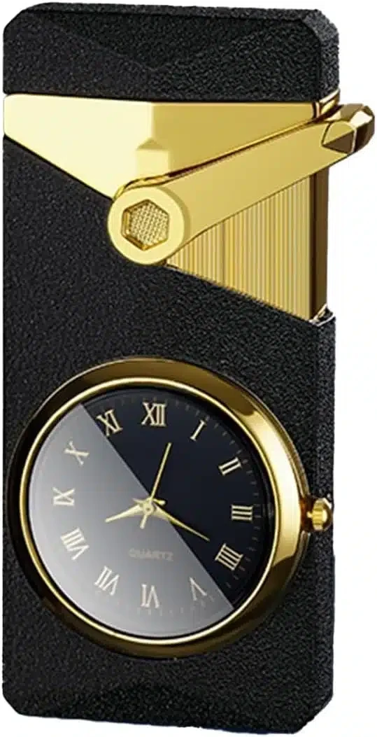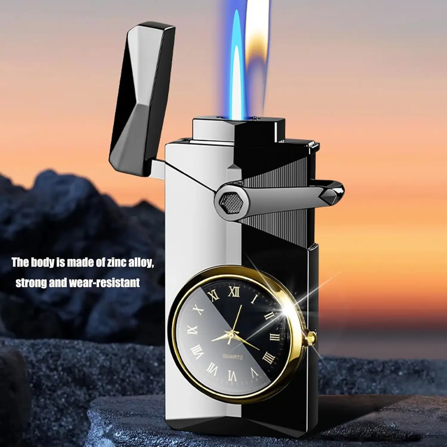 Briquet Montre portable coupe-vent, briquet à deux flammes, collection cadeau pour homme (noir)