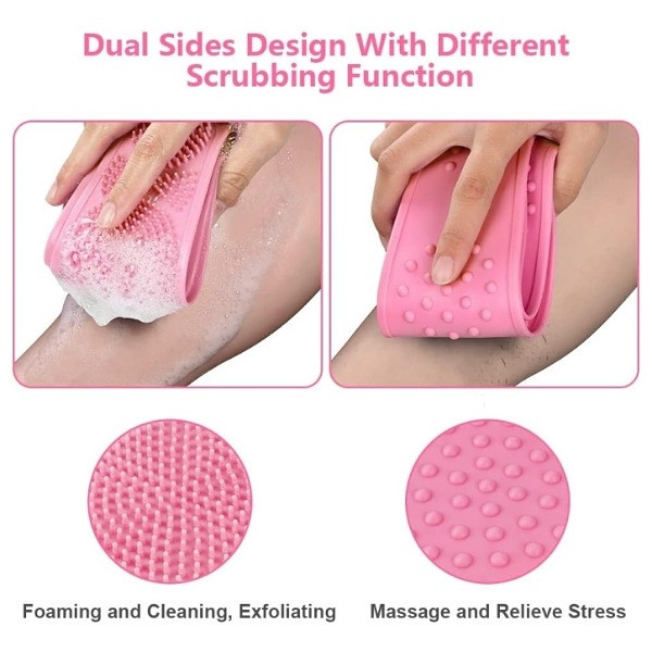 Brosse de Bain Double Face en Silicone – Ceinture Exfoliante pour le Corps et le Dos