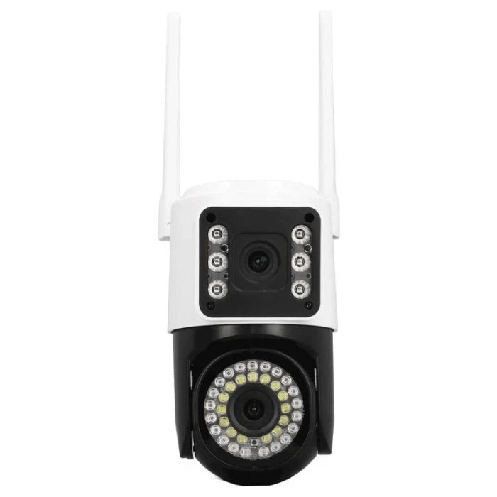 Caméra de Surveillance Externe MIPVISION GW-D14Z avec 2 Yeux Rotatifs - Résolution: HD - Ouverture de l'objectif: F2.0 - Rotation 360° - Vision nocturne Couleur - Connectivité: WiFi - Détection de mouvement - Compatible avec les appareils fonctionnant sous iOS et Android - Caméra IP sans fil avec accès pour plusieurs utilisateurs - Possibilité d'afficher une vision en temps réel de la caméra ou d'accéder à l'historique des enregistrements - Emplacement pour Carte mémoire jusqu'à 128Go - Couleur: Blanc - Garantie: 1