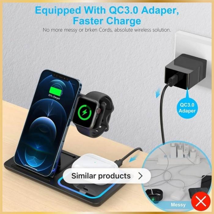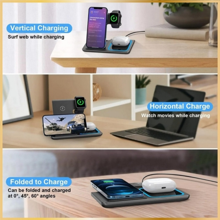 Chargeur Sans Fil 3 en 1 Pliable – Recharge rapide sans fil doit être acheté par multiple de 1