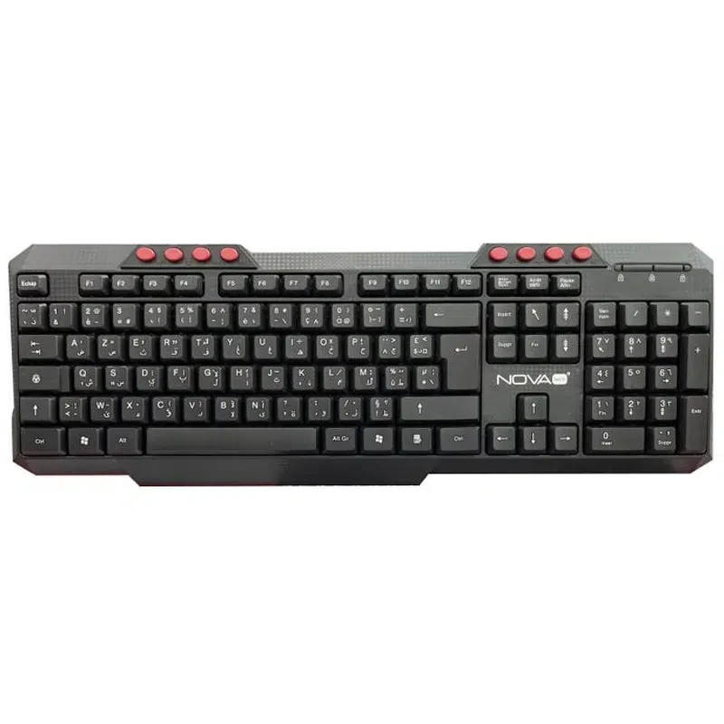 Clavier Filaire Nova NT-K8163M - Technologie de Connectivité : Filaire - Interface : USB - Norme du clavier : AZERTY Bilingue - Nombre de Touches : 118 touches - Longueur de câble: 1.2 Mètres - Tension de travail: 5V - Température de travail : 0°C~45°C - Dimensions : 445 x 153 x 24 mm - Poids : 352 g - Couleur : Noir - Garantie : 1 an