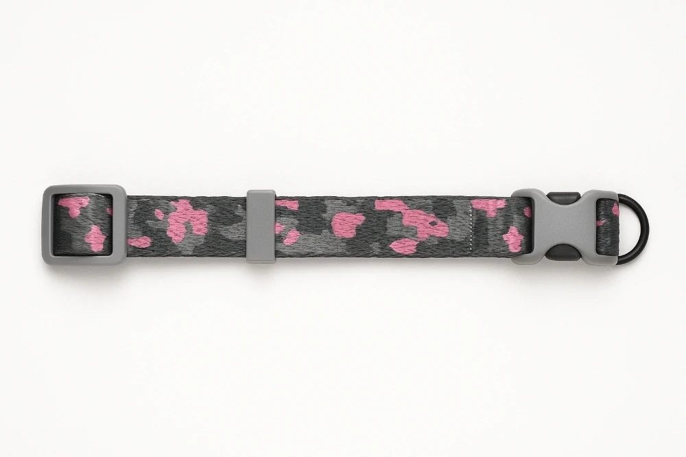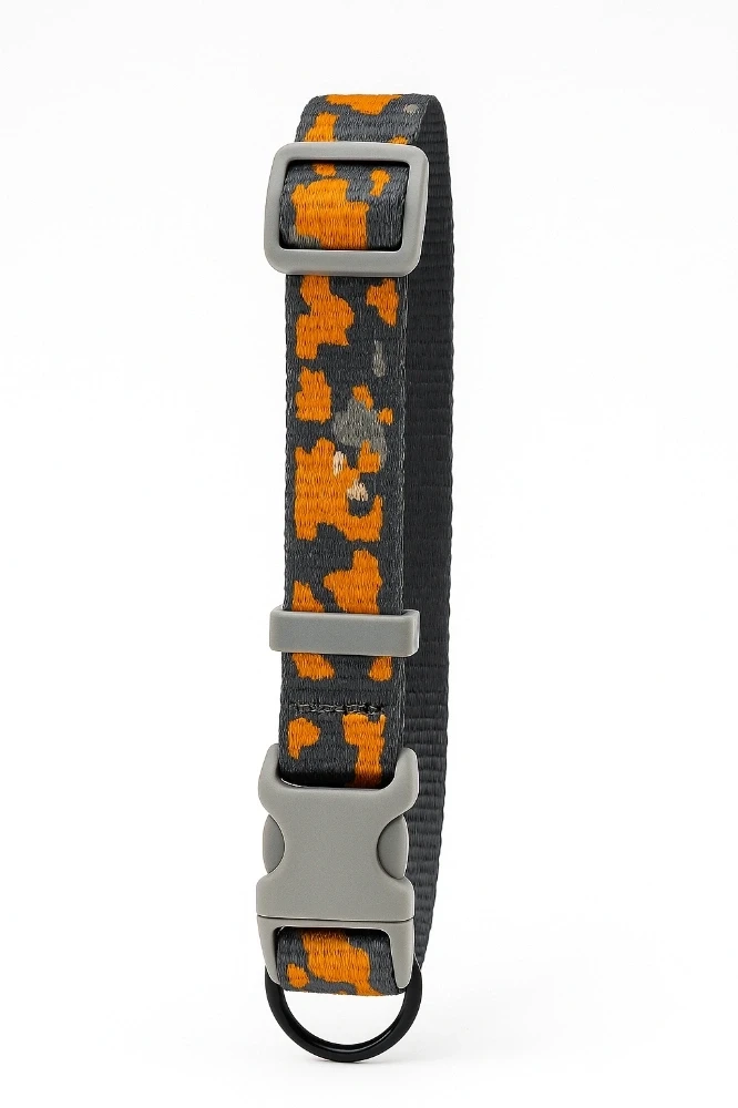 A durable adjustable camouflage collar designed for pets. Lightweight, secure, and perfect for adding a stylish outdoor touch.