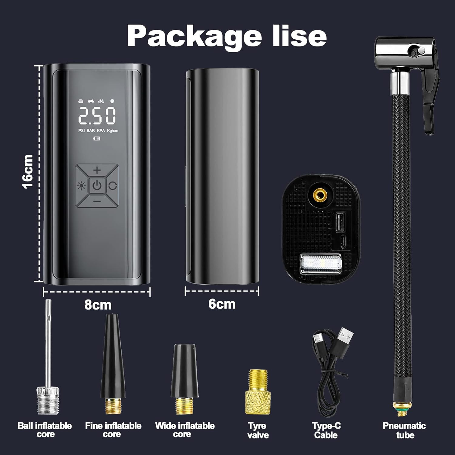 • DEUX MÉTHODES DE GONFLAGE : Ce mini compresseur d’air électrique est livré avec un câble d’alimentation 12 V DC et un câble de charge USB Type-C, offrant deux façons de charger et de gonfler. Une fois chargé, vous pouvez utiliser le câble USB pour gonfler sans fil ou utiliser l’alimentation du véhicule pour les urgences externes. Quatre adaptateurs supplémentaires sont également disponibles pour répondre aux différents besoins de gonflage, ce qui le rend idéal pour les pneus de moto et de vélo. Il est recommandé de gonfler complètement le compresseur d’air avant de l’utiliser et de serrer le tube de gonflage amovible pour éviter les fuites.