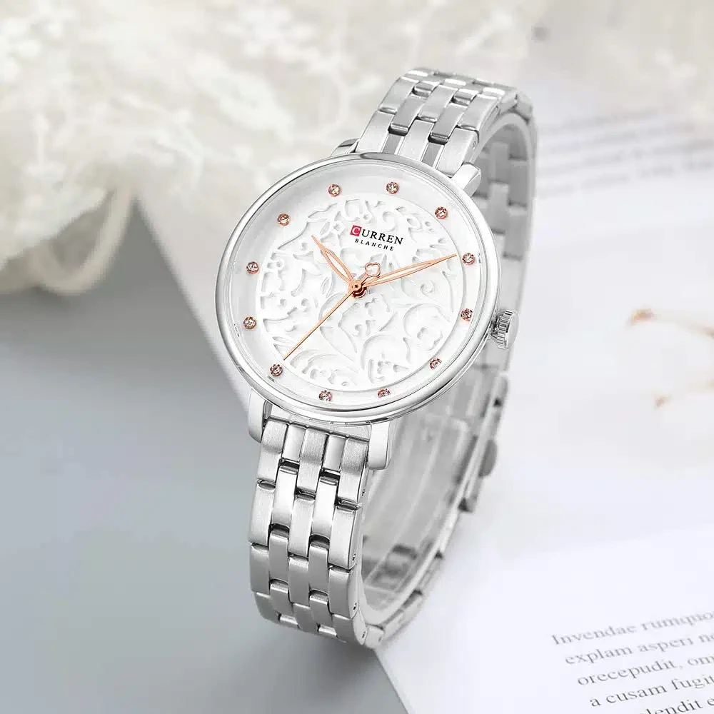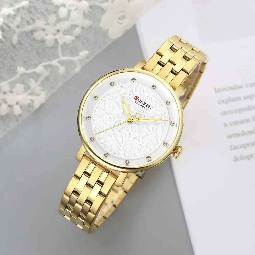 Curren Montre Bracelet décontracté Horloges en acier inoxydable Avec Strass Dames Horloge de Mode de Luxe 9046