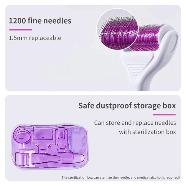 ✅ 6 en 1 : 4 têtes micro-aiguilles, 1 brosse en silicone, 1 bac de désinfection