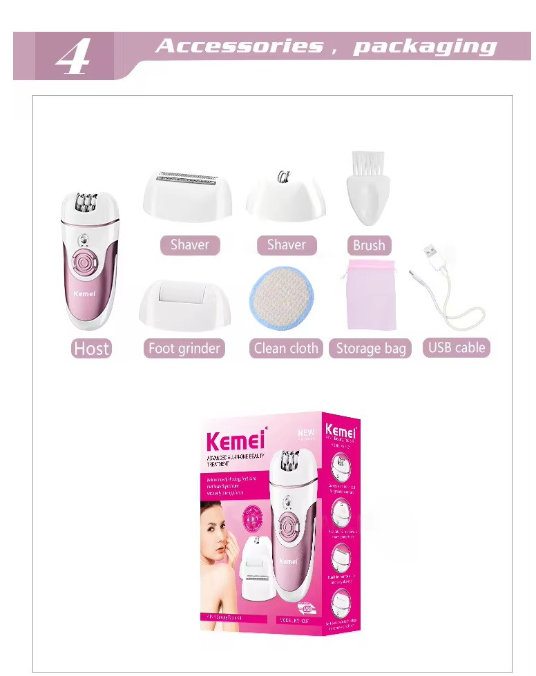 Epilateur électrique Rechargeable 4 en 1 pour femmes, outil de soins Corps et pieds