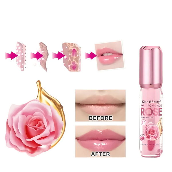 Gloss à lèvres Kiss Beauty Magic à l’acide hyaluronique – Teinte Rose 5 ML