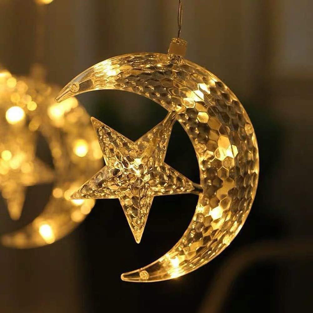 Guirlande lumineuse LED pour rideau de Ramadan Eid avec lunes et étoiles –