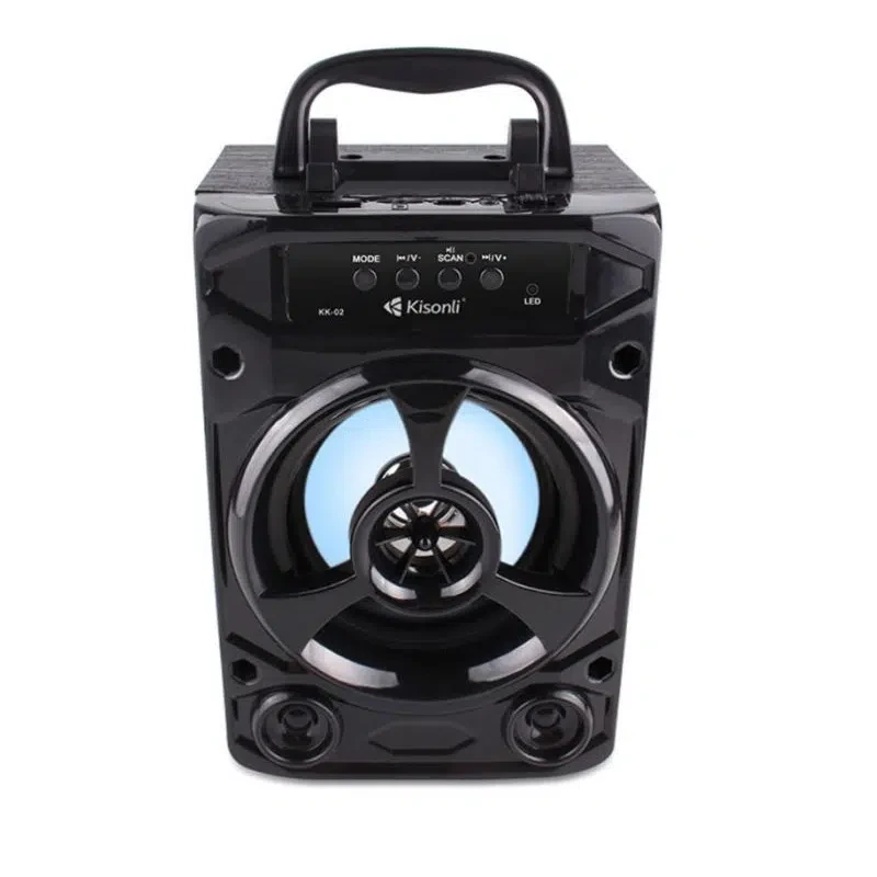 Haut Parleur Portable KISONLI Kk02 - Connectivité: Sans fil( Bluetooth 4.0) - Lecteur de carte micro SD - Lecteur USB - Radio FM - Fonction de réponse aux appels - Capacité Batterie: 800 mAh - Lumière LED - Dimensions 200 x 140 x 100 mm - Couleur: Noir - Garantie: 6 Mois