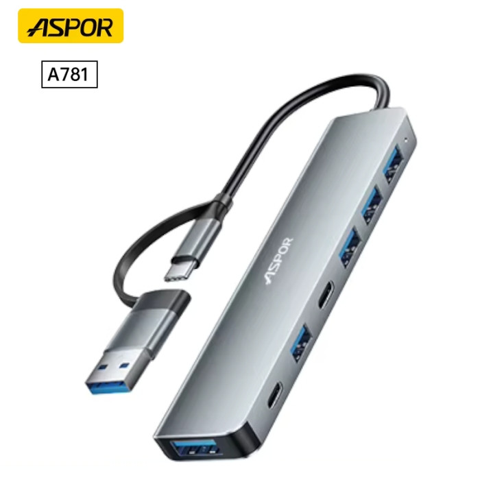 Le Hub USB 7-en-1 ASPOR A781 est la solution idéale pour étendre rapidement les ports de connexion de votre ordinateur, tablette ou smartphone.