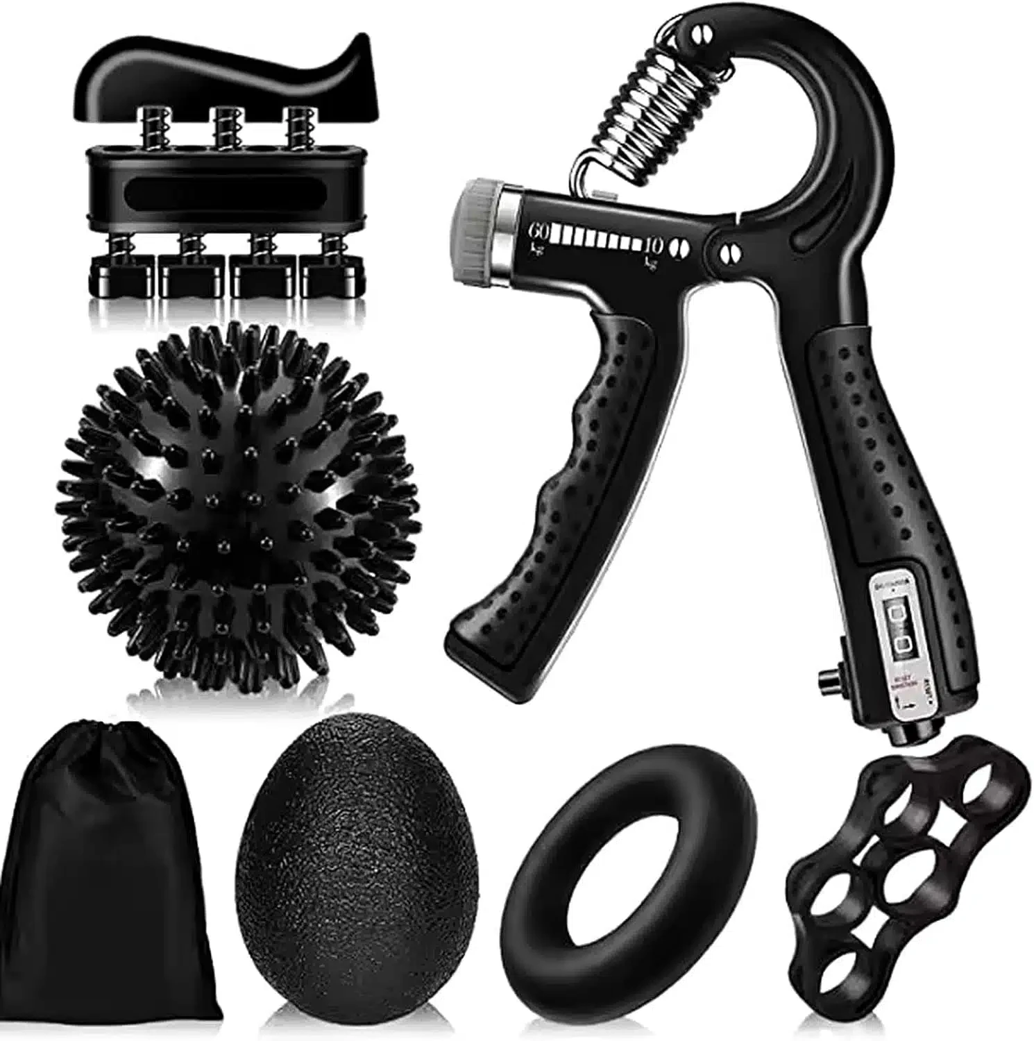 【Kit d’entraînement de renforcement des mains Pack de 5】 L’entraînement de préhension de l’avant-bras comprend un renforcement de poignée réglable, un appareil d’exercice pour les doigts, une bande de résistance pour l’étirement des doigts, un anneau de préhension pour améliorer la préhension et une balle de thérapie des mains, une variété de produits, un large éventail d’utilisations.