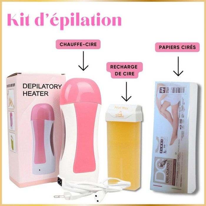 Kit Épilation Appareil Chauffe Cire & Roll-On Miel & Bandes doit être acheté par multiple de 1Le Kit Épilation Appareil Chauffe Cire & Roll-On Miel & Bandes est la solution révolutionnaire complète qui combine chauffage électrique rapide, cire roll-on miel douce et bandes non-tissées résistantes, transformant l'épilation maison en résultats professionnels salon durables 4 semaines