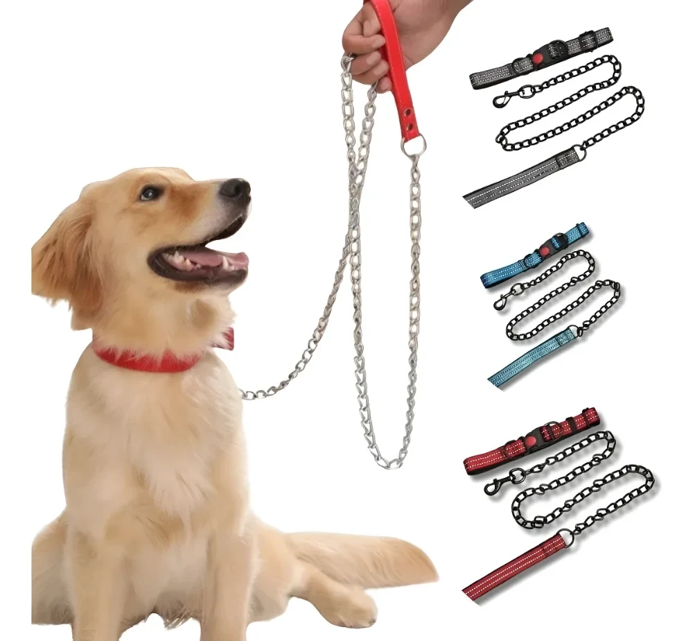 Confort et contrôle parfait : poignée rembourrée et chaîne renforcée offrant une prise en main ferme, même avec les chiens les plus énergiques.