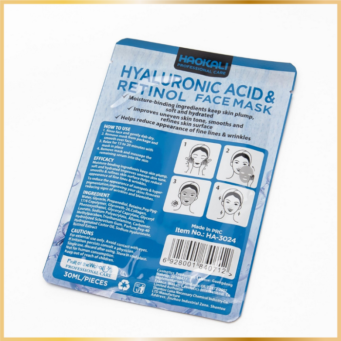 Masque Visage Anti-Âge Haokali à l’Acide Hyaluronique & Rétinol