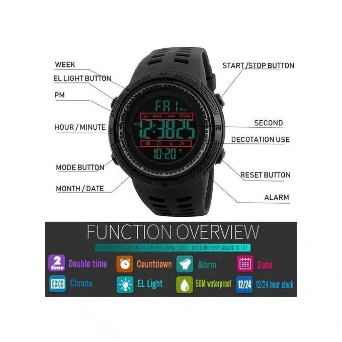 Montre Pour Homme REF 1251 – Sport Numérique – Étanche 5Atm -Multifonction – Noir