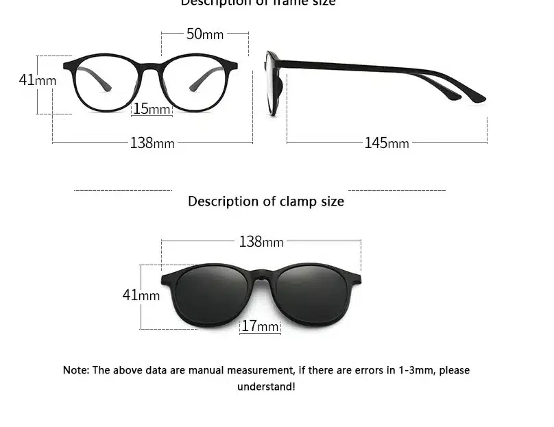 Monture de lunettes de soleil 6 en 1 pour hommes et femmes, Clip magnétique optique polarisé REF 2245A