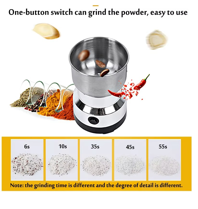 4. Convient pour: moudre des grains de café, des cacahuètes, des haricots et des haricots, des amandes, etc. (ces solides ne doivent pas contenir d’eau)