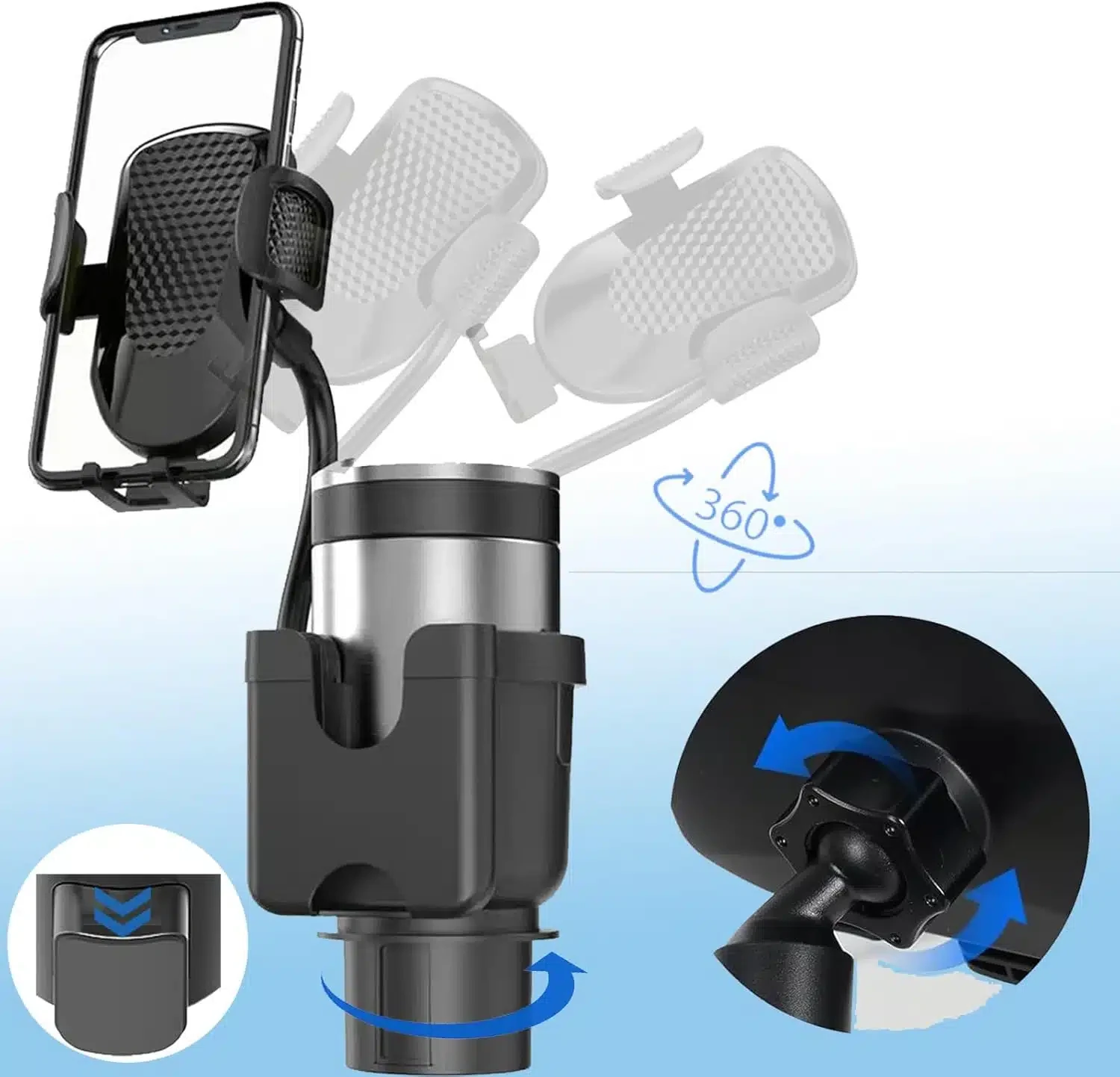 Porte-gobelet de voiture extensible avec support de téléphone 3 en 1