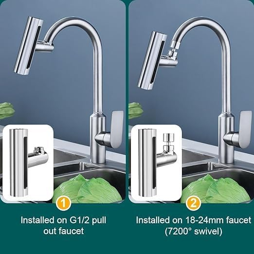 • 【 Rotation à 720 ° 】 — Équipé d’un bec pivotant à 720 °, le robinet de cuisine avec pulvérisateur à tirette permet une plus large gamme de nettoyage et une utilisation plus flexible.