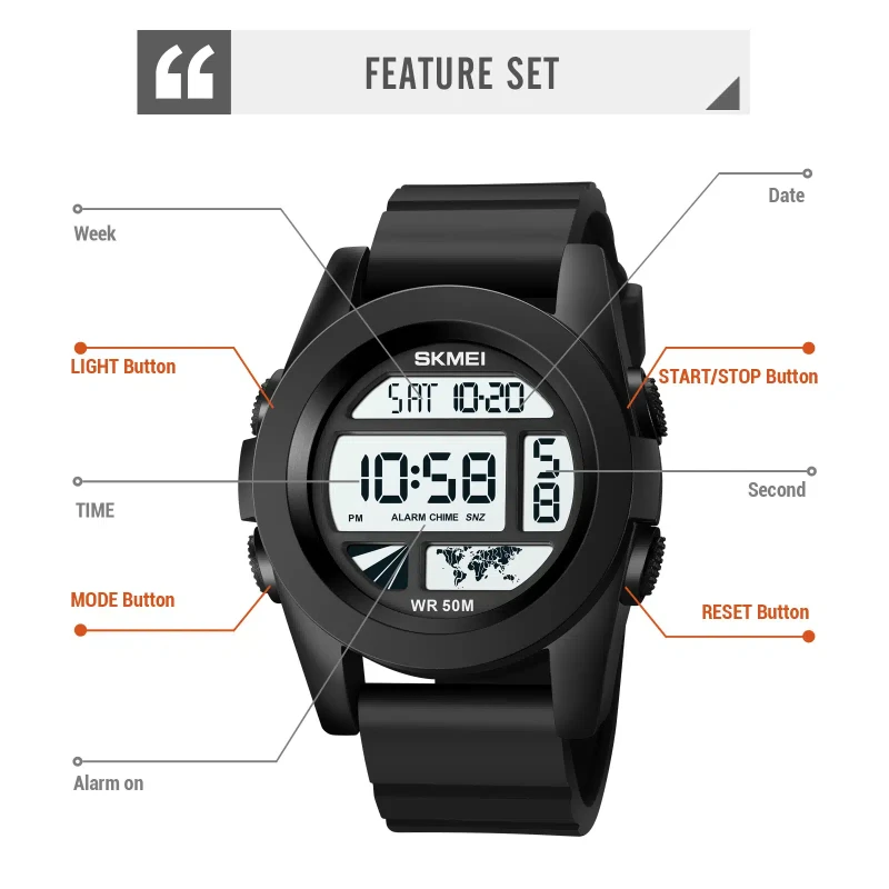 Skmei -montre numérique multifonction pour homme, Chronographe 1906