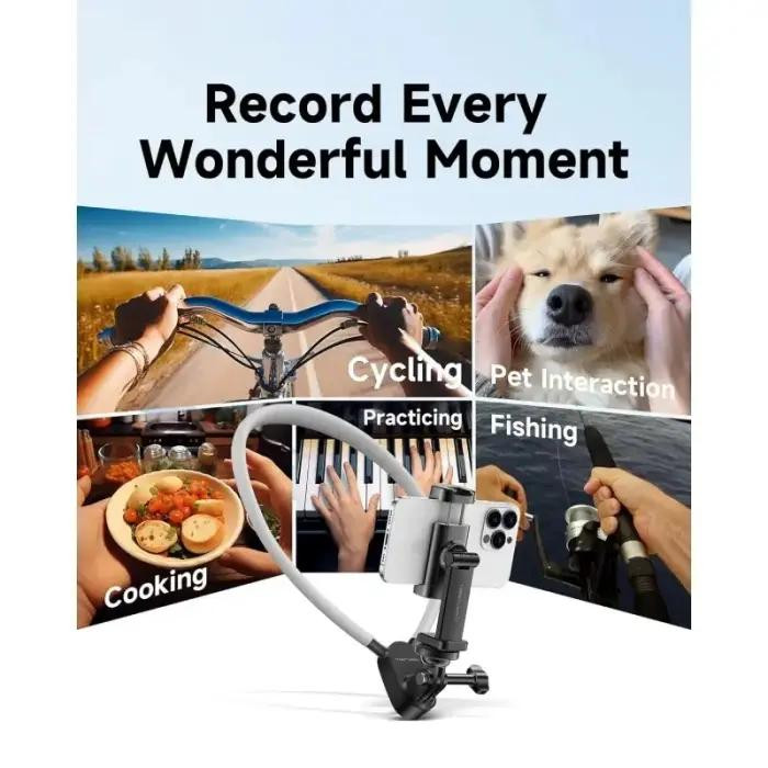 Le JMARY MG-01 est un support de cou pratique et innovant conçu pour maintenir votre smartphone ou votre caméra d’action tout en gardant les mains libres. Il constitue une solution idéale pour les créateurs de contenu, les vloggers, les amateurs de sport ou toute personne souhaitant capturer des vidéos immersives avec facilité.
